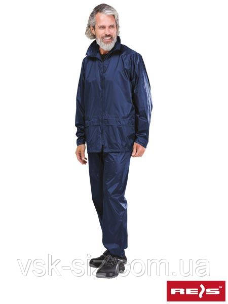 Непромокальний комплект, що містить штани до талії та куртку з тканого матеріалу.